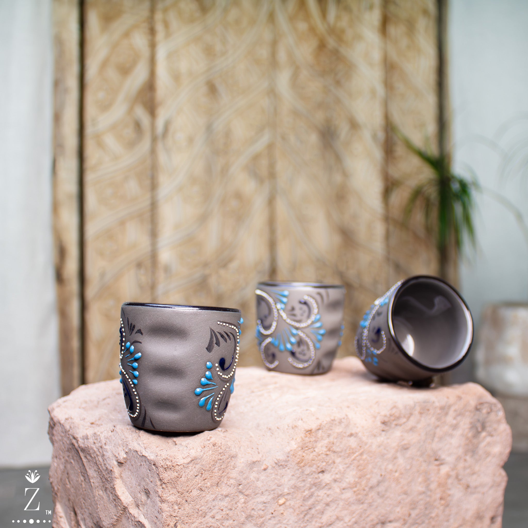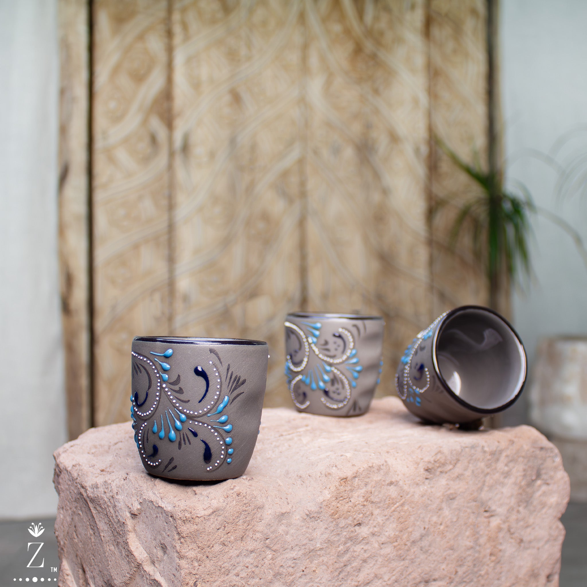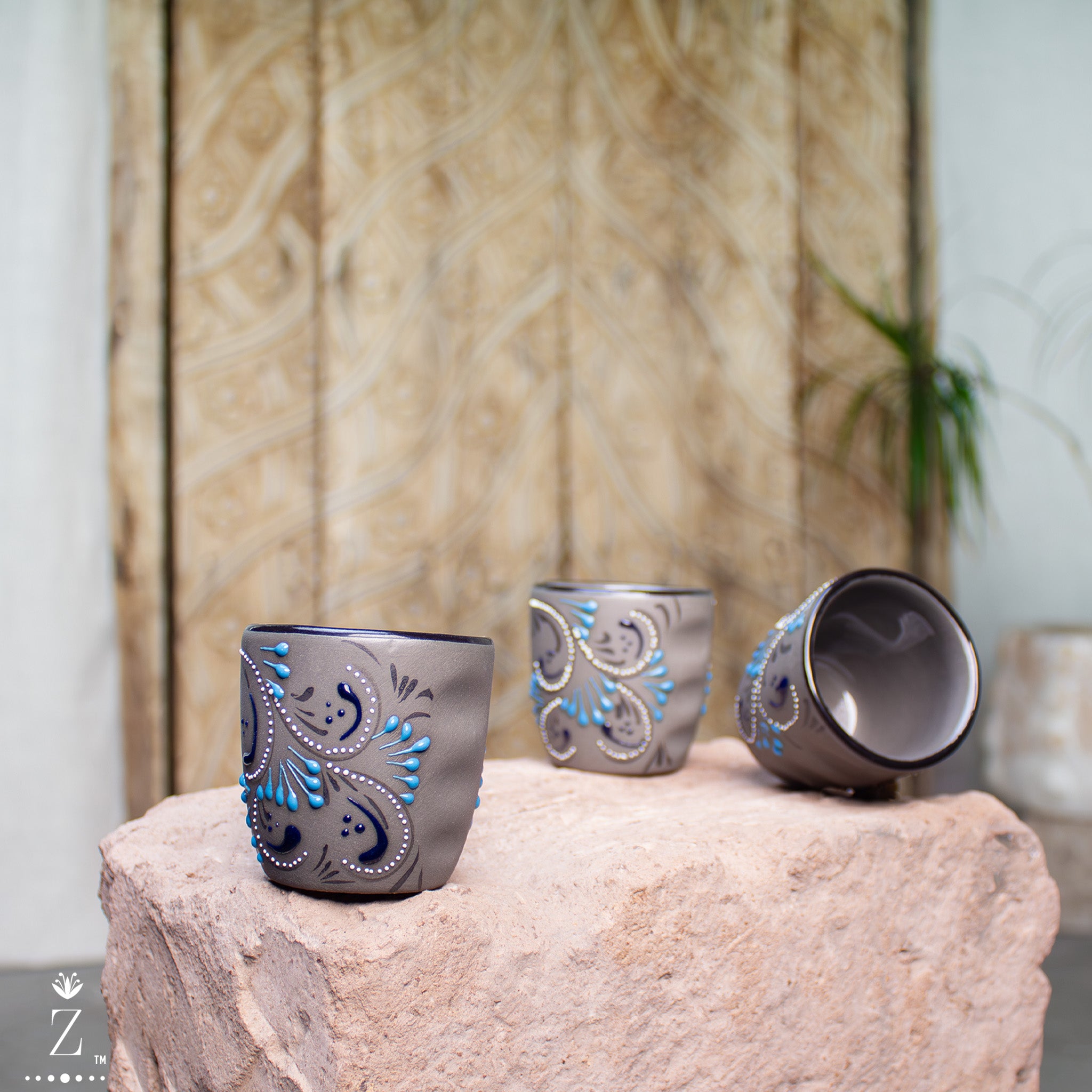Skilled hands apply the Azules patterns and detailed artwork, a process that ensures the patterns and artwork on each piece are never identical. This innovative artisan technique is called "relíeve" meaning "relief." The technique requires skilled artisans to apply layers of natural lead-free paint by hand to the surface. During the 2nd bake temperatures reach 1700˚F, the intense heat changes the relief pattern on a molecular level and literally raises the hand-painted pattern providing a glossy texture just to the painted areas, creating a beautiful contrast to the surface of the stoneware.