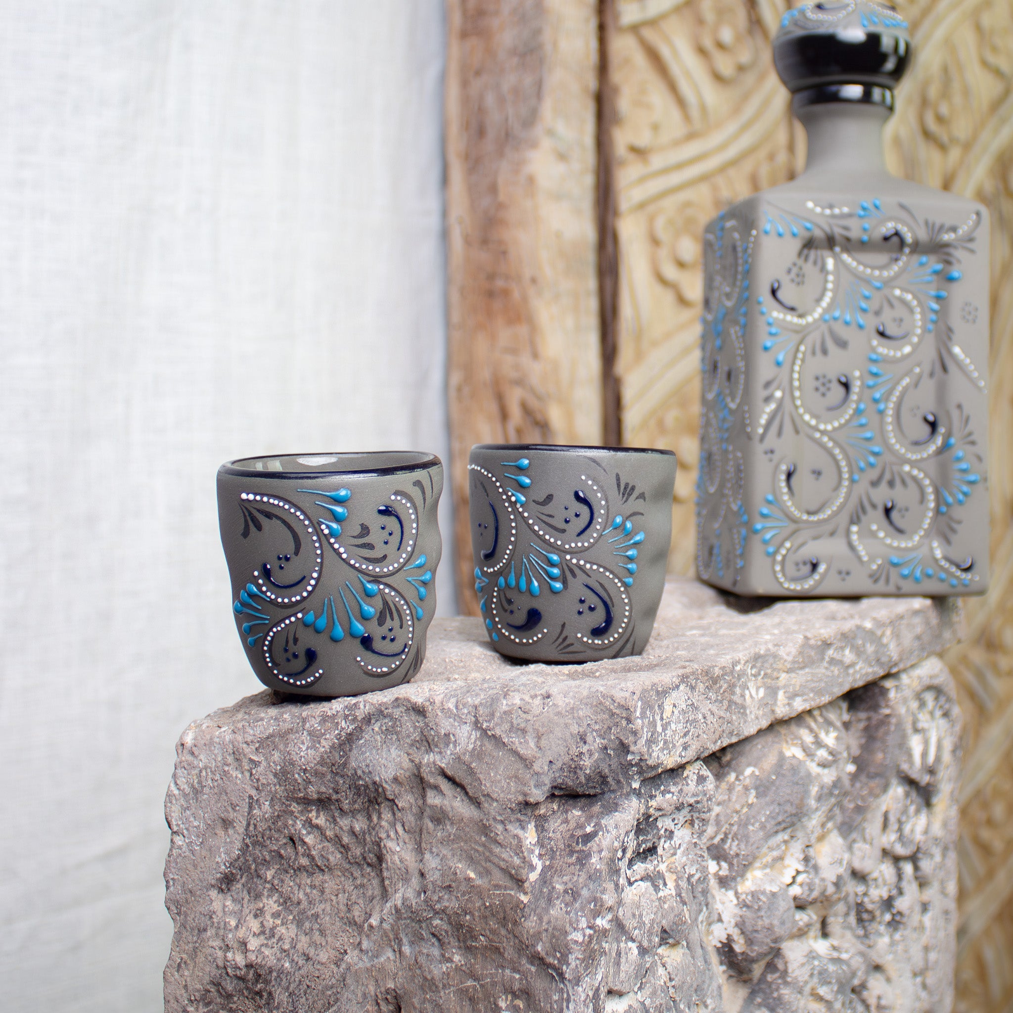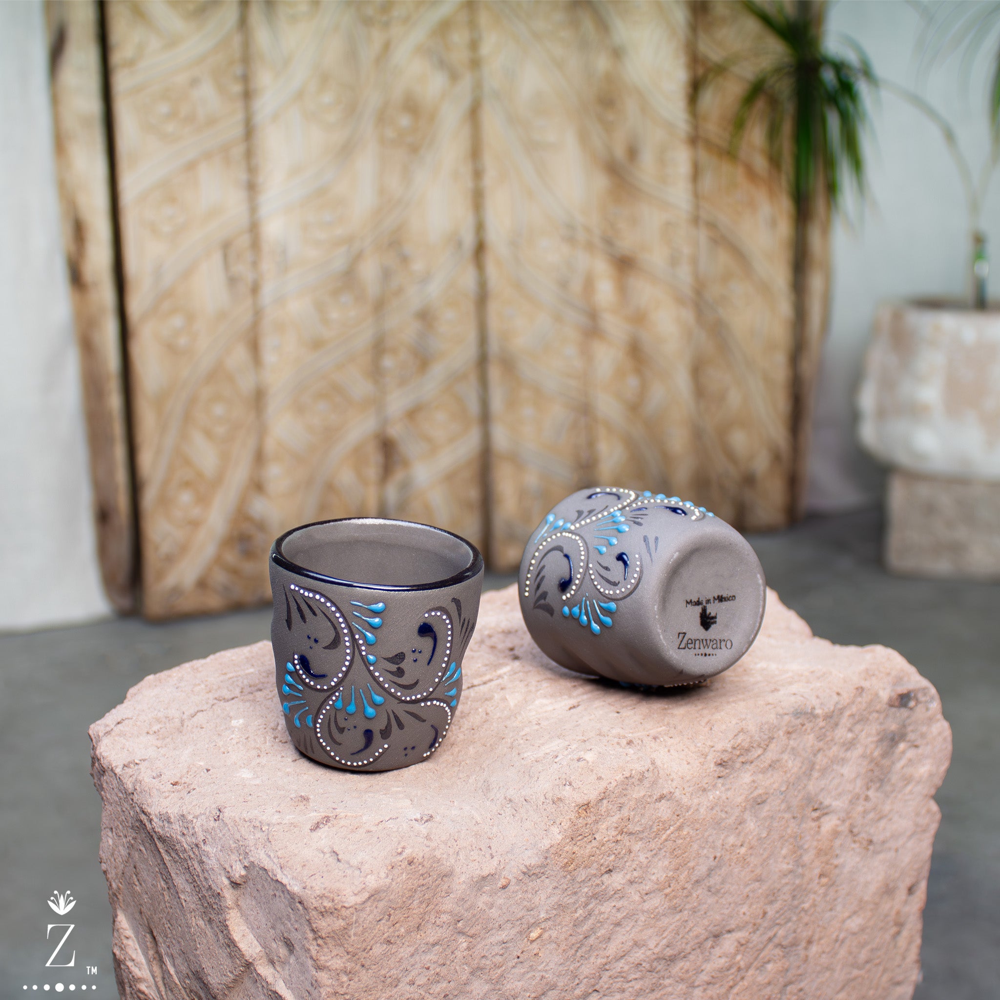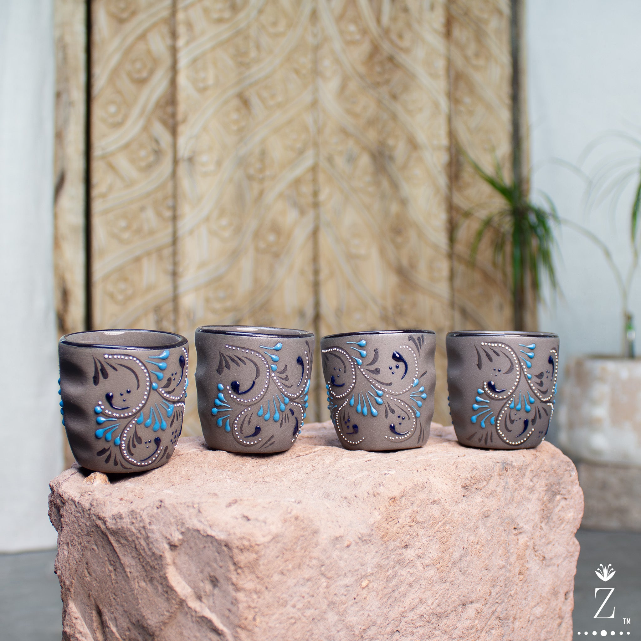 Skilled hands apply the Azules patterns and detailed artwork, a process that ensures the patterns and artwork on each piece are never identical. This innovative artisan technique is called "relíeve" meaning "relief." The technique requires skilled artisans to apply layers of natural lead-free paint by hand to the surface. During the 2nd bake temperatures reach 1700˚F, the intense heat changes the relief pattern on a molecular level and literally raises the hand-painted pattern providing a glossy texture just to the painted areas, creating a beautiful contrast to the surface of the stoneware.